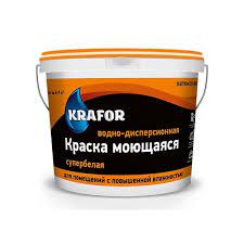 Краска В/Д ЛАТЕКСНАЯ МОЮЩАЯСЯ интерьерная супербелая "KRAFOR" 3 кг.(оранжевая крышка)